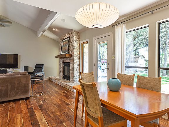 Lovely ranch style home in a great location with flexible floor plan & spacious lot. This home boasts 4 bedrooms, which is rare for the area, high ceilings and updated flooring. Gorgeous hardwood floors in the main spaces along with most of the bedrooms & designer tile in the kitchen and hallways. The nicely-appointed kitchen has recently painted, stylish white cabinets and offers a breakfast bar overlooking the dining room. Wonderful living room that features vaulted, beamed ceilings and a lovely stone fireplace. Large lot with great trees & expansive back deck create an enjoyable outdoor space. Within walking distance of the highly coveted Caraway elementary school and a park.