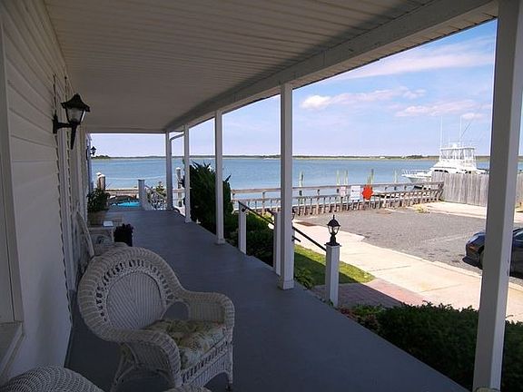 This highly desirable corner property offers 84' of waterfront frontage with 6 boat slips & a charming, older home originally built in 1920. The potential exists to knock down the existing structure and subdivide the property into 2 single family building lots by securing a variance and any and all other permits or approvals that may be required from the municipality or State, which are to be secured at the sole cost and expense of the Buyer. The home welcomes you with a charming wrap around front porch - line up your rocking chairs and enjoy the water views. The first floor features a formal living room, spacious kitchen, dining room and family room that spans the back of the home, offering excellent views. This level also offers 3 bedrooms, a full bath, a sunroom/office and laundry area. The second floor includes a den/TV area, full bath and 3 bedrooms, one of which has sliders leading to a sun deck with awning, and the position of this deck affords maximum water views. The first floor has gas hot water baseboard heat, while the second floor is unheated.The home exudes charm and character throughout, but is in need of updating and will be conveyed strictly "as is/where is". On the south side of the property is an area that includes a mechanical room (with heater and hot water heater) 2 storage sheds for beach and fishing items, a powder room and a fully enclosed outside shower. There are a total of 6 boat slips, 4 of which are rented for the season producing an income of $4,550.00 while the owner reserves 2 slips for personal use. The sun deck positioned over the water is great for gatherings, fishing, crabbing and enjoying the bay breezes and sunsets. A portion of this deck extends beyond the Riparian Grant and therefore the seller has a 7 year Riparian License, at a cost of $3,869/yr. This License renews in 2014 and it will be the responsibility of the Buyer to secure this lease. The possibilities for this property are many. Do not wait - this property has been priced below assessed value and it will not last on the market long. Take advantage of this extraordinary opportunity and make your appointment today to view this special