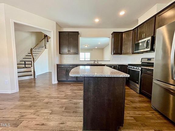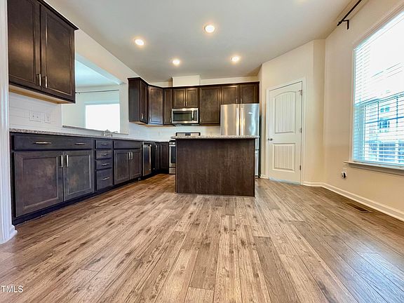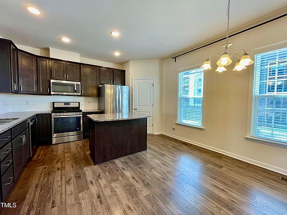 Beautiful end unit 3 Bed, 3.5 Bath townhome in Apex. A must see with private suite on lower level. Mainfloor has open floor plan, gourmet kitchen and large outdoor deck. Great for entertaining and relaxing. Upstairs boast a huge primary suite with trey ceiling, oversize tiled shower with seat and WIC. Close to shopping, I-540 and Hwy64.