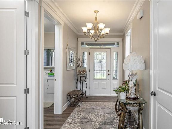 Welcome to your dream home in the prestigious Settlers Bay golf course community of Wasilla, Alaska! This like-new, 2-story gem built in 2017 offers breathtaking inlet and mountain views. Step inside to discover the allure of laminate flooring and luxurious quartz countertops throughout. With 3 bedrooms, 2.5 baths, plus an office and bonus room, there's ample space for all your needs. Unwind inthe family room upstairs, nestled conveniently off the bedrooms. Don't miss the chance to call this stunning view home yours!