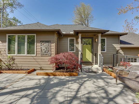 VIEWS! Luxurious Fulton Park single-level custom home with Mt Hood, partial St. Helens and Willamette River views from all East "walls of glass" windows. Dual ensuites bookend a spacious indoor/outdoor living room featuring high ceilings and expansive deck, perfect for entertaining or sipping coffee on a Sunday morning. All bathrooms are spa-like: heated tile floors, walnut cabinetry, massage jet shower systems, rich tones. The primary bedroom lives expansively with a dedicated bath, dressing room, walk-in closet (with built-in organizer), room for a king-sized bed and extra furnishings. The gourmet kitchen spotlights the Fisher Paykel, 6-burner double-oven stainless range. Modern appliances and cooking surfaces surround on either side. In the dining room, and included with the sale, a gorgeous custom-made madrone wood dining table and built-in bench seat. The seller's appreciation of natural elements are featured in the surrounding yards. Visitors are greeted off Laview Drive to an enclosed patio and bubbling water feature. The front yard has new plantings of various Maples, Magnolias, Black Lace Elderberry, Grasses, Sumac, Daphne and more, complete with a 4-zone irrigation system. Low voltage uplighting and low lighting create striking ambience at night. All permits of the remodels are closed and finaled and include: updated electric, plumbing, roofing, siding, HVAC, sewer line, gutters, Trex decking, and many areas of upgraded foundation and/or seismic enhancements. Tall detached garage with opener, dedicated driveway, exterior door opens to back of property. OPEN THIS SATURDAY, 1-3PM. The mountain is out! [Home Energy Score = 8. HES Report at https://rpt.greenbuildingregistry.com/hes/OR10076256]