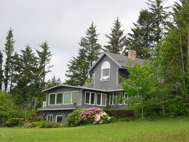 Home with a view! This fantastic estate sits on top of a hill with an unobstructed panoramic view of the ocean and meadow the house rests on! The home itself features a fantastic layout that will be great for anyone looking to have a forever home, weekend getaway or a vacation rental! Hardwood floors, bar and entertaining area downstairs, and endless possibilities for the future owners with the acreage and outbuildings!