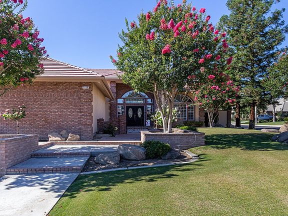 Every REX home comes with a 30-day buyback guarantee. Terms and conditions apply. Schedule your appointment with REX for a same day showing. Lovely 4 bedroom, 3 bath home with bonus room/office and 3636 square feet in Bakersfield! This gorgeous single-story home is situated in the highly desirable Emerald Cove Community. Ceramic tile flooring and wide plank laminate wood floors throughout. There is a living room/dining area combo with a beautiful fireplace and lots of windows for natural light, as well as high ceilings. A large family room is complete with a stacked rock fireplace and custom built cabinetry. Large French doors provide access to the lovely backyard. The spacious kitchen has an open floor plan with granite counters, a center island, tons of counter space with cabinets and drawers, custom built-in refrigerator to match the beautiful cabinetry, a walk-in pantry and breakfast nook. All of the bedrooms are light and bright with generously sized closets, and the master has its own wing with a beautiful fireplace, ceramic floors, French doors with access to the backyard and a stunning en suite bath adorned with marble counters, a separate shower, water closet, jetted tub with travertine tile surround, dual sinks and custom cabinetry. Beautiful large movie room. Lots of privacy throughout the home and outdoors as well, with an amazing large backyard that has an outdoor kitchen, grill and patio. Large rocks and shade trees are found throughout the yard in addition to palm trees for a Southern California feel. Tons of grass space, a fountain and large covered patio are perfect for enjoying the outdoors. Four car garage. Central AC. Separate laundry room. Close to dining, shopping and easy freeway access. A very special home that will go fast. Don't miss out! Schedule a showing with REX today!