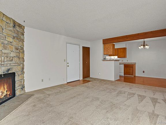 Welcome Home to this exceptional value in the Telegraph Hill Community! Great location in Lakewood near Sloans Lake, and Edgewater. With 749 sq ft, this 1 bedroom 1 bath is larger than most and has a spacious feel that will brighten your spirits. Open floor plan, natural light, remodeled bathroom, new electric panel, central air-conditioning, washer and dryer, dining area, easy to use kitchen area, stone fireplace and patio. The bedroom is sizable with a wonderful walk in closet. One reserved parking space and ample guest parking. No stairs and easy access from parking space. Take notice of the low HOA dues which will be kind to the budget in a well maintained community. The landscaping is well tended, garden areas, open areas. Amenities include a pool and clubhouse. Great location for enjoyable Colorado living: parks and trails nearby including Sloans Lake and Aviation Park, Crown Hill easy drive, easy access to downtown and all things wonderful in Lakewood, Wheat Ridge, and Edgewater. Many nearby amenities to experience and explore.... shopping, restaurants, Casa Bonita, schools, 40 West Arts District, and so much more!