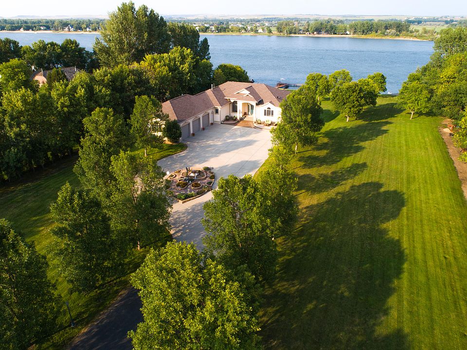 Enjoy paradise located on 2 lots w/ 200 ft of Missouri River water frontage w/ a 32x56 shop. This custom 5 bedroom, 3 bathroom ranch style home w/lower level walk-out has it all. The kitchen includes quartz countertops, stainless steel appliances w/double oven, large pantry, custom backsplash & heated tile flooring that leads to formal & informal dining areas. The large master bedroom suite has 2 walk-in closets, dual sinks, whirlpool tub & heated flooring. The lower level walk-out includes large family room w/wet bar, additional bedrooms, & bathroom w/whirlpool tub. Find sunrises overlooking the river on the east facing maintenance free deck or custom patio. The oversized 1,314 sf 3 stall garage is fully finished w/insulation, heat, 2 floor drains, h/c water & access to main & lower levels. The 1,792 sf shop has more room for toys that includes (2) 12 ft overhead doors, bathroom, workbench, heat, h/c water & shelving for storage. Updated exterior & central air unit in 2018.