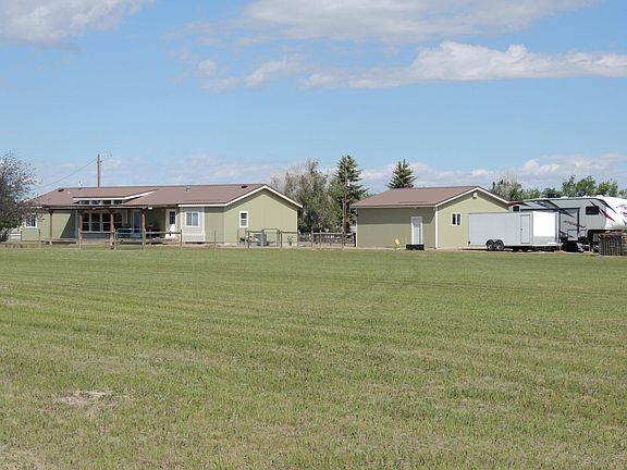 Remarks: Incredible Manufactured home with artic insulation package. Three bedrooms, 2 baths, Huge Master suite double vanities, garden tub and shower. Lots of natural light throughout with amazing views of four different mountain ranges, (Highwoods, Little Belts, Big Belts, and the rockies). Covered deck built with pressure treated lumber and composite decking. All 5 acres are flat, fenced and cross fenced with multiple gates perfect for your livestock. New metal roof in 2019, new stainless steal appliances. County paved and maintained road leads right to your gated entrance. Large detached 2 car garage, 24x30 with a 16x30 carport with plenty of RV parking. Seller has place fire resistant hardie board siding all around. Easy access to interstate, Great Falls, and airport.