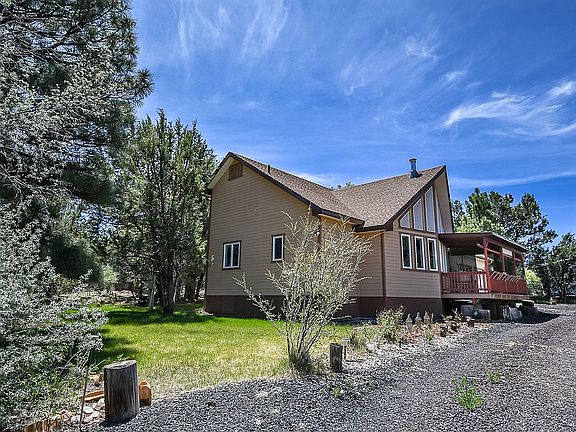 This home features the best of both worlds-a beautiful home for her and huge garages/workshops for him! This 2 bed 2.5 bath home can easily convert loft to additional bedroom. Rustic log banisters reclaimed from the Rodeo/Chediski fire. Vaulted ceilings and lots of windows to optimize the view. Wired for surround sound. Newly painted interior. AMAZING GARAGES! All with oversized doors. 30x40 features concrete floors, electricity, sky lights, insulated. 26x41 RV garage has 3 12-foot bay doors, plus electric. Additional out buildings include insulated chicken coop, well house, and finished shed. Walking paths through out 2.5 acre lot. Sprinkler system plus six spigots thoughtfully located over property. RV Pad set up with dump station and water. Fruit trees and many fenced garden areas.