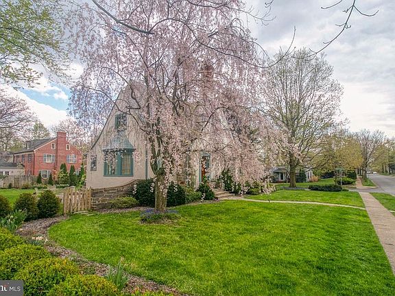 Undoubtedly, one of the most beautiful and charming homes in Stoneleigh, this Tudor is nestled deep within the neighborhood and features 4 bedrooms and 2 1/2 bathrooms. Enter through the foyer into the lovely large sun-drenched living room with a stone wood-burning fireplace and gleaming wood floors. The sunroom off the living room blends seamlessly with the living room and boasts 2 walls of casement windows. Enter the kitchen from the generous formal dining room. The kitchen has wood flooring, stainless steel countertops, and an adorable little alcove for a small table or pantry space. Behind the living room, you will find a nice-sized bedroom/family room and full bath. Upstairs you will find 2 oversized bedrooms and an adorable cozy one. The dormers create interesting spaces and lots of charm. The deep, walk-in closet adjacent to the hall bath could easily be converted to a second upstairs bathroom. The lower level includes a large, inviting, carpeted family room, a half bath, loads of storage, and a large utility/laundry room. This home is in mint condition with a high-velocity air conditioning system, all new top-of-the-line Anderson custom windows with maintenance-free trim throughout, brand-new front and rear doors, a high-tech stucco coating good for +/-35 years, a high-end attic insulation system, an underground irrigation system, a slate roof, and gorgeous oak floors. The current owner is an engineer and avid gardener and it shows in everything he has done. Average BGE bill is only $166/month. The lovely gardens surrounding the home are filled with perennials and carefully selected plants and trees. Sitting proudly on the corner of two of Stoneleigh's nicest streets on a generous level lot, this home is truly special. One of the only neighborhoods in Baltimore county where you can easily walk to many shops and restaurants. Pre-school through college, the neighborhood pool and sport-courts, Starbucks, the Charmery, Villagio Cafe, several banks, and numerous other independently owned shops are all within a short walk. Blink and this one will be gone!