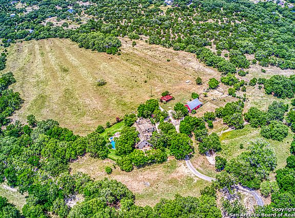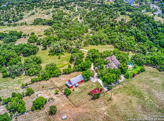 Stunning 82 acre Ranch boasting a 5446 sqft estate, with full barn guest house and a resort style pool. Located in the heart of the Texas Hill Country, minutes from Canyon Lake and San Antonio offering complete privacy. Property surrounded by 2 seasonal creeks, and is completely fenced. Horse & cattle raising allowed! Currently roamed by 3 Longhorns, as well as a large population of whitetail and axis deer. Barn has 2 horse stalls, as well as a watering area in place. Set your private tour today!