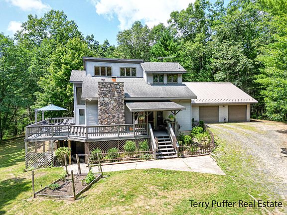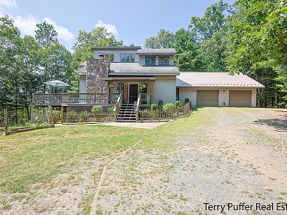 This home offers a serene and private retreat on the Pere Marquette River. New renovations now provide a third bedroom in the basement. Enjoy breathtaking views from the floor-to-ceiling windows and vaulted ceiling in the main floor living room, complete with a cozy fireplace. The kitchen is bathed in natural light, and the main floor also includes a guest bathroom, laundry room, and a master bedroom with a master bathroom and walk-in closet.