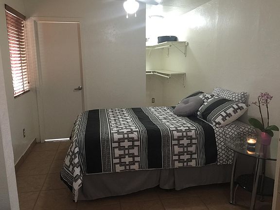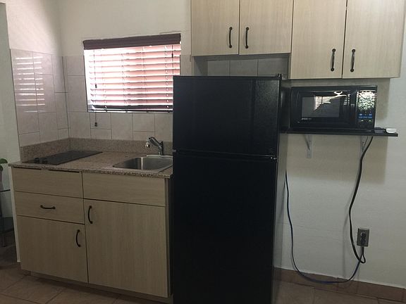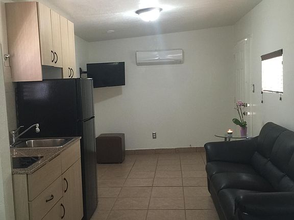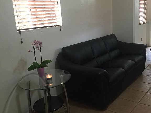 Beautiful, furnished guest house/studio for rent. In a beautiful and quiet neighborhood in convenient location. Utilities included ($50 monthly utility fee for each additional tenant) Has it's own private entrance and small patio. All ceramic tile, very nice closet, new kitchenette with sink, fridge, microwave and 2 burner electric tabletop stove. New a/c unit, newly remodeled bathroom, own parking space. Sorry, no pets. No Smoking! Deposit required. Please call or text for any questions.