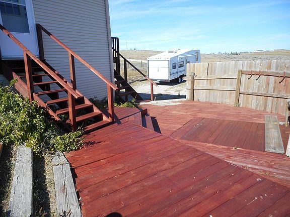 Country livingclose to town! Short and easy drive from I90 to this attractive two story home. Second floor retreat with bedroom, bathroom and family room. Hardwood floors. Main level master bedroom. Good, soft water. Two car, tuck under garage plus unfinished basement. Two pellet stoves. Two fenced lots totaling 32 acres. 30'x45' barn. Crushed concrete road surface. Call Pat Avery Real Estate 307-686-0856.