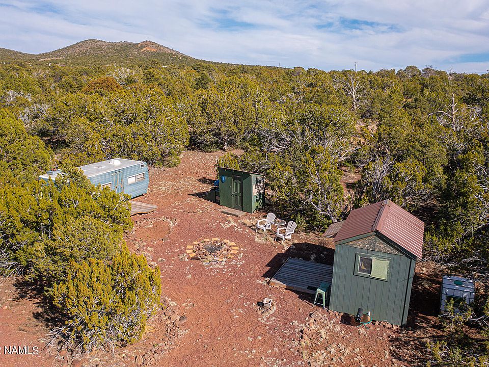 Gorgeous Retreat on 12.6 Acres N of Williams includes a Tiny House, Travel Trailer & Outbuilding. This ecologically pristine parcel offers spectacular views, old growth pinyon pines & junipers, native wildflowers, a riparian zone, and abundant wildlife viewing. The property feels remote and is very private, yet is only minutes to amenities in Williams. A proper culvert is in place at the developed driveway, which leads to a perfect, level building site where the Tiny Home is located. Several level areas are available to choose your perfect dream home building site. A rocky intermittent drainage with interesting riparian plants flows on the northern part of the acreage while a few beautiful open meadows are distributed throughout the property. Views of Mt Wilson and surround rolling hills provide stunning sunrises and sunsets. An abundance of natural Malpais rock is available for building projects. A gravel pit is conveniently located nearby on Espee Road if needed for building or improving driveways. Electricity is available via APS near the property boundary. Alternatively, install solar and/or wind power and opt for easy off-grid living on this sunny acreage. There are surveyor's markers at all four corners from an official recorded survey: one is at the driveway (NE corner), two more are along the barbed wire fence on the south boundary (SW & SE corners), and the fourth is at the NW corner at the end of a marked trail. This raw and pristine land features amazing views, peace & quiet, and meandering trails. There are many recreational opportunities to explore nearby such as Cataract Canyon, Kaibab Lake, Mt Wilson, Bill Williams Mt, Grand Canyon, Snowbowl Ski Resort, and Sedona Red Rocks. Located in Unit 10, which is known for its trophy elk hunting, this property has fabulous wildlife viewing. The nearby High Country Fire Rescue Station serves this parcel under its fire protection area. Only 10 min to Kaibab Lake, 15 min to Williams (all amenities), 40 min to Flagstaff & 45 min to Grand Canyon. Call Listing Agent for a Showing Today!