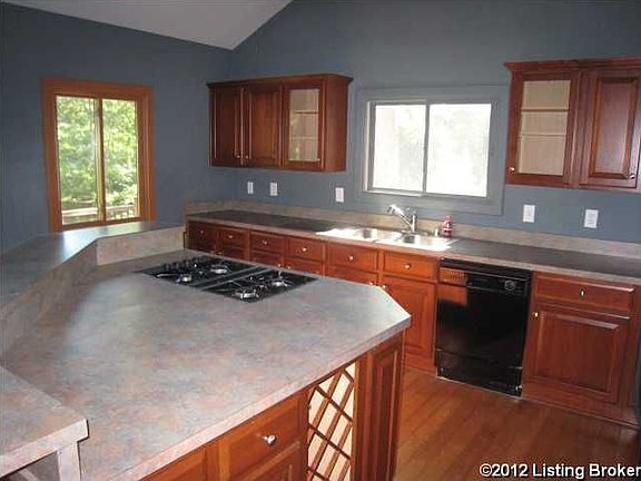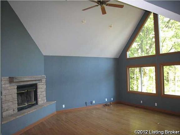 Close to everything, but a country like setting with this home sitting on just under 2.2 acres in PeWee Valley in Oldham County, just 4 miles from the Gene Snyder Freeway (I265)!! The home backs up to woods and offers a front view of a private lake (owned by this property and the adjoining neighbor) from the tiered decks across the front. When you enter the home, it is open from the living room with a large stone fireplace to the dining area and then to the kitchen with an island and cherry cabinets (all three areas have vaulted ceilings and large windows with views of the lake. The first floor also offers a master suite and bathroom with an extra large walk-in closet, 2 bedrooms, 1 full and 1 half bath, and a large laundry room with sink. Downstairs in the walkout basement, there is a family room, bedroom, full bath, and an unfinished room. The garage offers lots of room for cars or storage. *Seller requests buyer to contact designated Chase loan officer for a mortgage pre-qualification.