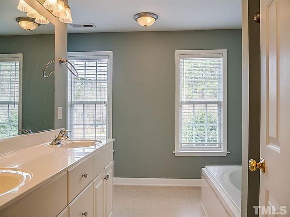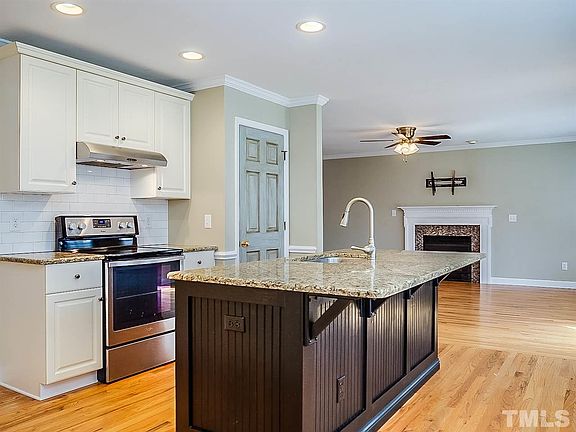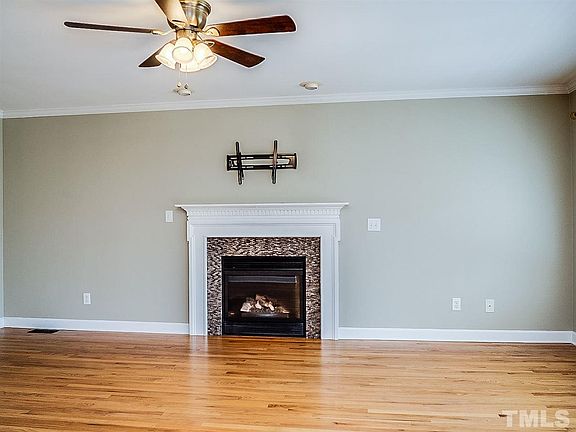 This Raleigh two-story offers hardwood flooring, a fireplace, and a two-car garage.