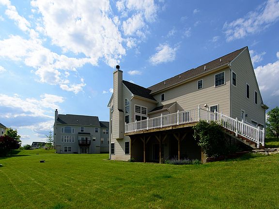 Views for miles. Stand on the deck and take in the view.Magnificent Center Hall Colonial with all of the bells and whistles. Hard wood floors throughout the first floor. Two story foyer. Turned butterfly staircase. Formal Living room with crown molding. Formal Dining room with crown molding and chair rail. First floor office overlooks the level rear yard. Spacious Two story gathering room with fireplace flanked by two story Palladium windows. 42" Cherry kitchen cabinets with crown molding. High end granite counters. WOW these counters are beautiful. Kitchen island with seating. Breakfast room sliding glass doors to the deck. Oh my what a deck and what a view. Large Main bedroom with sitting room, walk in closet and main bathroom with soaking tub and separate shower. Three additional bedrooms and hall bath. Ceiling fans in every bedroom. House has been freshly painted. Walk out basement is waiting to be finished for additional space. Move in ready!!