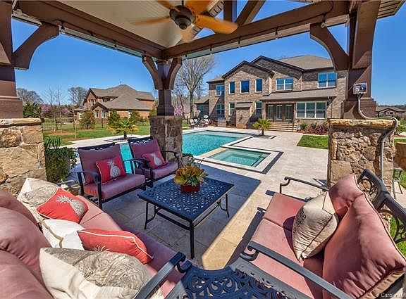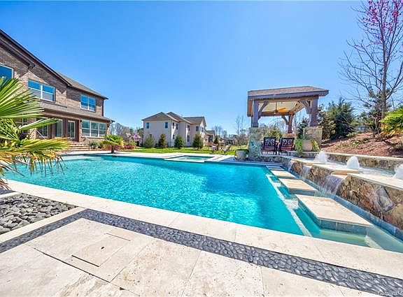 Enjoy Luxurious, Resort-Style Living in this Pristine 5 Bedroom, 4 Bath Brick and Stone Home with Open Floorplan and Exquisite Backyard Paradise! Stunning, High-End Custom Pool with Waterfalls, Hot Tub for Year-Round Relaxation, and Raised Pool Ledge to easily accommodate lounge chairs, pets, & small children! All surrounded by Extensive Travertine Decking with Multiple Entertaining Spaces, Cabana with Ceiling Fan and Overhead Lighting, Beautiful Landscaping and Fencing. Prepare to be Impressed... this home will be the envy of everyone & makes entertaining a breeze! Fabulous Kitchen opens to Sunroom & Great Room, has Pool View, Beautiful Quartz Countertops, Large Island with Storage & Seating, Stainless Appliances, Casual Dining Area & Storage Galore! Guest Room + Bonus on Main! Incredible Master Suite with Den/Flex Room and Large Dressing Area that has 3 Walk-In Closets!!! Quality Upgrades include Plantation Shutters, Surround Sound, Security System, Uplighting, & more! Top Schools!