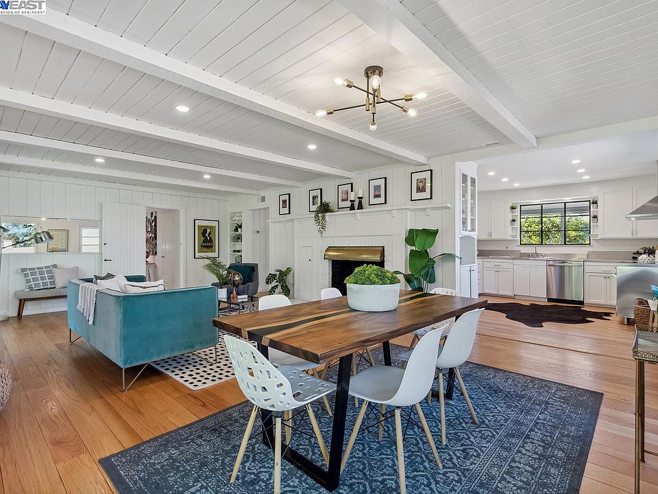 Sitting among the oak trees near Montclair’s coveted amenities and parks, 7001 Thornhill Drive is a 4BR/3BA mid-century with vintage details, level entry, 2-car garage and modern upgrades. Fruit trees, an expansive brick patio, and a friendly porch welcome you to the 2476 square foot home. Inside, handcrafted woodwork and walls of windows enhance the open floor plan. Planked wood and beamed ceilings span the home along with hardwood floors. The living room features a stately mantle and fireplace and an easy flow into the dining area and renovated kitchen with plenty of storage and a chef’s stove. Walls of windows provide views of your own woodland with French doors onto a deck, and below is a large patio for play and entertaining. The main floor enjoys a sunny primary bedroom with ensuite bath and large closet area, and a second bedroom with built-in bed, alongside a full bath with shower-over-tub. Downstairs is a spacious family room with fireplace, laundry area, storage, separate entrance, a third bedroom and en-suite full bath, and a fourth bedroom well suited for guests, office or play area. The attached garage leads to the driveway with a rarity of multiple parking spaces. Close to top-rated public and private schools, Montclair Village’s restaurants & shopping, and parks.