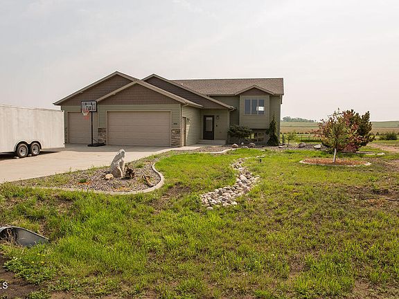 This beautiful home is located just outside city limits on nearly 1.5 acres! The house faces west so your deck and yard are shaded for our perfect North Dakota afternoons! The main floor includes an open layout with large kitchen & pantry, three bedrooms including Primary Suite, and bonus bathroom. The lower level has two more (unfinished) bedrooms, laundry, a full bathroom, great entertaining space, and full bathroom. If you've been waiting for this desirable location this is your shot to own in the country while being minutes from the city!