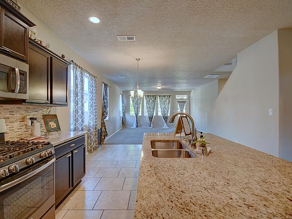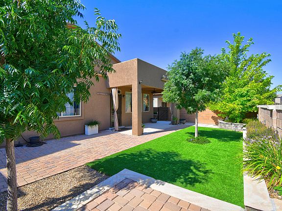 Green Built-NM Silver Lafayette Plan by DR Horton hasBeautiful Landscaping (30k) with synthetic grass (no waisted water) trees. Enjoy an elevated flowerbed with drip irrigation. BY overlooks park and has been gently lived in! Trendy School area (Volcano Vista HS) and some students walk to school. 9' foyer entry. Primary BR AND office on main level. 3 BRs, full bath and huge loft (13 x 17) upstairs. 2 CFA units plus 2 Refrigerated air units. Low E Thermal Double Pane Windows. Seller loves the HUGE primary closet (11 x 10), view of the park and built-in pest control Injection system. Garage has epoxy flooring, tankless Hot WH and soft close extra quiet opener. 2 doggie safe BY gates. Don't miss the doggie barn door! Mechanical inspection done and repairs complete. Lucky You-Hurry!