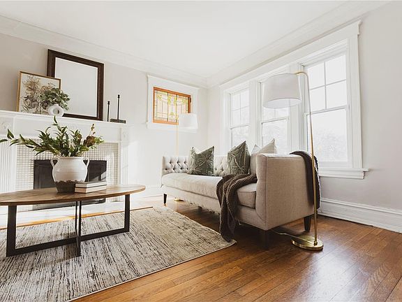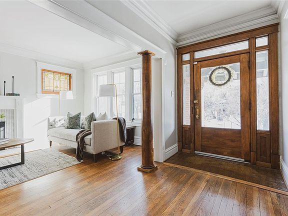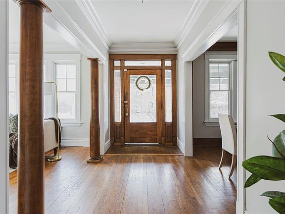 This West Portland Place residence combines architectural charm with modern updates. The classic center hall layout promotes a seamless flow on the first floor, featuring a bright living room with oak columns, a refurbished gas fireplace, stained glass windows, and hardwood floors. French doors open to a light-filled sitting/breakfast room. The dining room, once a library, includes built-in bookcases. The kitchen is equipped for culinary enthusiasts with a six-burner stove, stainless steel appliances, and granite countertops. The second floor has four spacious bedrooms, while the third floor offers flexible use as a bedroom, playroom, or office. Additional amenities include a covered front porch, fenced yard, patio, one-car garage, and a prime location near WU, the Loop, and Forest Park.