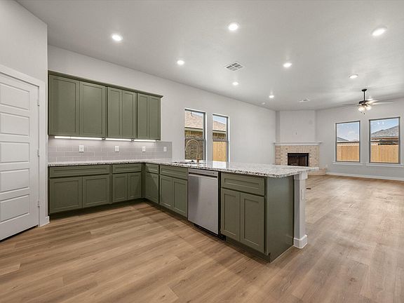 Buy NOW and get up to $10,000 Use-It-Your-Way Cash! This beautiful home features a brick exterior with double columns and stone accents framing the covered front porch. Inside, luxury vinyl plank flooring flows through the open-concept kitchen, living, and dining areas. The kitchen includes granite or quartz countertops, a spacious peninsula with bar seating, stainless steel appliances, and a large enclosed pantry.