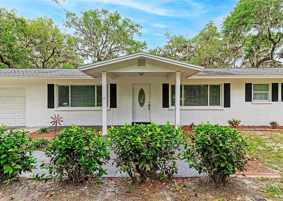 Welcome to this beautiful ranch-style home situated on a sprawling 2.27-acre lot with a private gated driveway. This block-constructed home features 3 bedrooms and 3 full bathrooms with an open and inviting split floor plan. There are essentially two master suites with private bathrooms. All 3 bathrooms have been recently updated, featuring modern fixtures and a sleek design. This property has recently been updated with all-new tile flooring throughout, fresh paint and also has newer double pane windows. Now, it's just waiting for your personal touch with matching furniture and decor to make it a truly stunning home. Cozy up next to the wood-burning fireplace in the living room, or entertain guests in the separate 22x12 screened gazebo with a pizza oven. *Located in one of the few communities with 2+ acre lots situated West of I-75, this property is just a short drive to some of the world's best beaches. With easy access to St. Pete, Tampa, Lakewood Ranch, and Sarasota, you'll love the central location. There's plenty of room for your boats, RVs, and other toys, and the oversized 2-car garage provides ample storage space. The exterior of the home has been recently painted, giving it a fresh and modern look. This exceptional property offers a rare combination of privacy and convenience, located just a short drive from some of the world's best beaches and major cities!