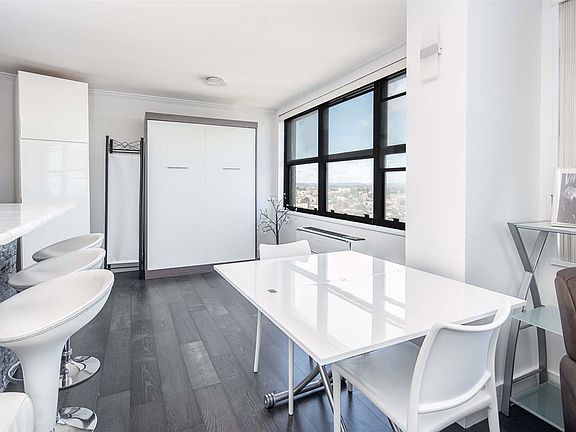 Truly one of a kind 970 sf 1 Bedroom 1.5 bath Condo with a great open floor plan completely renovated and NY views from all windows. The unit has been renovated with New Flooring, Custom European Kitchen Cabinets, High End Appliances, New Bathroom, Murphy Bed and etc. The Galaxy is a full service building with 24hr concierge service and security, state of the art gym and spa, indoor and outdoor pools, jacuzzi, sauna, steam room, tennis courts, indoor garage, washer/dryer room, WI-FI lounges. The HOA dues include all the above services along with Heating, AC, Hot Water, Water/Sewer, Gas, Electricity.