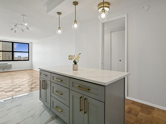 Welcome to luxurious living at the prestigious Galaxy Towers! Perched on the 31th floor, this stunning 1 bedroom, 1 full bathroom condo has undergone a complete renovation, offering breathtaking panoramic views of the iconic NYC skyline and Hudson River. The ultra-modern eat-in kitchen serves as the heart of the home, boasting marble counters, stainless steel appliances, and a stylish island with bar seating. Hardwood flooring flows effortlessly throughout the condo, leading you to the spacious living room, powder room , bedroom, and hallway bathroom. As a resident of Galaxy Towers, you'll enjoy unparalleled access to a wealth of amenities, including both indoor & outdoor pools, fitness center, shopping, a rec room, and much more. Experience the epitome of luxury living in this exclusive community, where every comfort and convenience awaits.