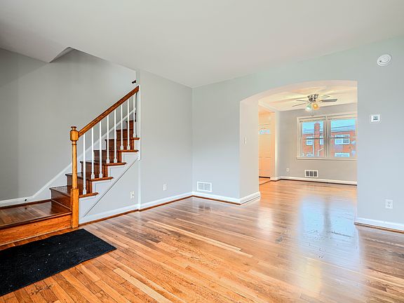 Lovely Updated 2BR 1 BA townhome in Eastwood/Baltimore County. The hardwood floors have been redone throughout the home. Fresh neutral paint. The kitchen/dining room is open allowing for a large dining room table. The bathroom has updated. Covered front porch. TV room in the basement. Laundry room. Walkout basement with rear yard. Ready for your summer barbecue. Close to shops, restaurants, and schools. Tenant pays utilities