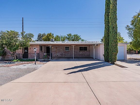 Discover East Tucson living at its finest! This single-story home offers 3 bedrooms plus a bonus room, 3 bathrooms, and 2152 sqft of space. Enjoy the convenience of a single-car garage, 2-car carport, and circular driveway - no HOA restrictions. Room for your RV with 50 Amp Hookup. The primary bedroom features a bonus room with Sliding Glass Doors to backyard and walk-in closet w/ custom cabinetry. A gas fireplace illuminates the family room, while the updated kitchen opens to the dining area with Door and Large Window to Side Yard. Outside, a covered patio and mountain views await in the side yard, with a workshop and storage in the backyard with double gate. Owned solar panels ensure energy efficiency. Perfectly situated near shopping, dining, parks, and more!