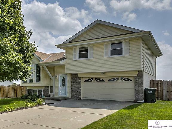 Check this one out! Stylish and clean split level in La Vista's Ardmore neighborhood with 3 bedrooms, 2 baths and a 2 car garage. Main floor has luxury vinyl tile flooring, kitchen offers a center island, master includes en suite with his/hers closets, plus great basement space for entertaining or an extra family room. Exterior features low maintenance vinyl siding, new roof and skylight in July 2019, great deck off the dining area and a fully fenced in back yard. Close to shopping and only a block from the neighborhood park!