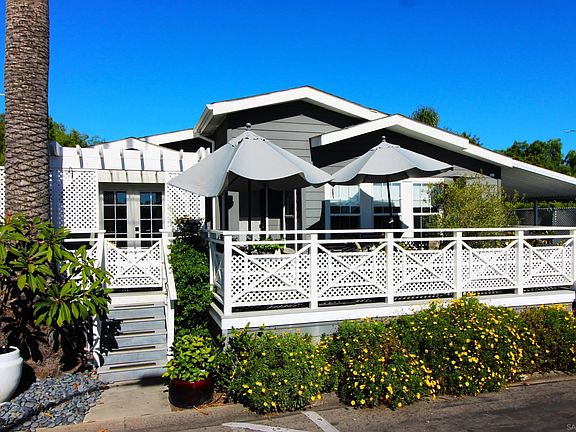 This over-the-top beach home is nothing short of stunning!!! It is one of the biggest and probably the best 2 bedroom, 2 bath manufactured home in beautiful Lakeshore Gardens, one of the most desirable 55+ beach communities in So. Cal.!!! It has been updated front to back, sparing no expense!!! From the moment you step inside you will be wowed by the spacious open floorplan, starting with the "great" great room with its high ceilings, abundance of windows, fireplace & dining area!!! You will be equally impressed with the huge gourmet kitchen, which features an over-abundance of cabinets & counter space!!! You'll also love the French doors that open to the amazing front deck! The unusually large primary bedroom will also impress, with it's huge walk-in closet! The primary bath is also top-of-the line, with its two large vanities, corner jetted soaking tub & large custom tiled shower! Can you imagine all this and a short distance to the beach and shopping at Poinsettia Village with dining, banking and more!!! Don't wait to see, it's a one-of-a-kind and won't last!!!