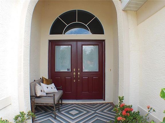 - Interior Features: High Ceiling(s), Master Bedroom Downstairs, Split Bedroom, Walk-In Closet(s), Window Treatments, Open Floorplan, Solid Surface Counters, Tray Ceiling(s), Thermostat