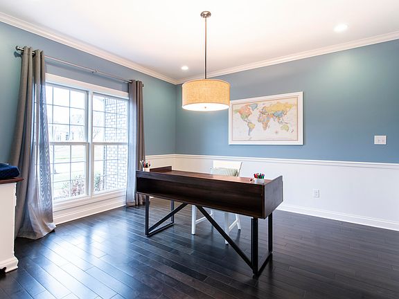 Enjoy a premier lot in the Overlook at Beech Spring Farm that backs up to a private wooded area!! This home offers a modern floor plan with updates galore and a spacious open first floor. Notice immediately when entering the home the two story ceiling in the great room that open to a large second floor loft overlooking the main living area. The kitchen is a true chefs delight with a Wolf cooktop, Pro-Line vent hood, double ovens, oversized kitchen island, granite counter tops, tile backsplash and a large wall of pantry cabinets that are sure to impress. Located just off the kitchen is a built-in drop zone off the garage entrance with a large laundry room. The master suite has an amazing en-suite bath loaded with extras. Inside the master bath is a large tile shower with double shower heads, a rain shower above, and a frameless shower door. The double vanity is just off the separate soaking tub and has upgraded cabinets and top, and comfort height vanity. The master bedroom itself has a tray ceiling and views into the private rear yard. Upstairs are two rather large bedrooms, and a smaller one that makes the perfect guest room or home office. The finished basement was just newly completed and sparkles!! The fifth bedroom is just off the living room and has a full size egress window and access to the full bath off the bedroom or the main family room. This room has an exceptional walk-in closet, great for storage. The main living room area is large and measures 16' x 26' and there is still plenty of additional space that could be finished later down the road. The workout room has rubber athletic flooring and makes the perfect exercise/home gym or even a play room. This home features so much delightful finishes that it is hard to list them all, but here is a few more: hardwood flooring through the main living areas, newly finished basement, flat rear yard backing up to woods, security system, tile flooring in all baths, upgraded kitchen appliances that remain for the new buyer, low utility bills, Mahogany double doors at the front entrance, formal dining room, upgraded lighting, gas fireplace and built-in bookshelves in the great room, and the ability to make the loft into an additional bedroom if you need additional bedrooms.