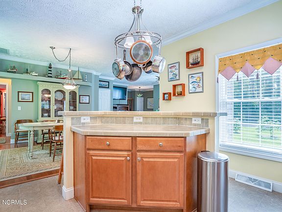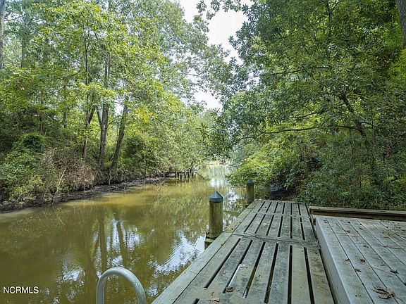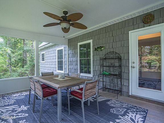 Creek front home with dock - 7003 Fairwinds Drive; a unique and spacious three bedroom creek front home with dock, screened in porch, metal roof, new HVAC, hardwood floors, poured concrete foundation, storage, whole house water system and more. The upper level offers an additional 975 feet of unfinished living space currently used as walk up attic but can be finished to offer three more areas of living space and an area plumbed for a 3rd bathroom. Great investment opportunity with short term tenant through 11/15/2024. Effective 6/14/2024 24 hour notice required for showings to accommodate tenant and pets. Fairwinds is a 16 home community just before the bridge to Oriental. Great investment opportunity for Air BnB! Property does not require flood insurance!