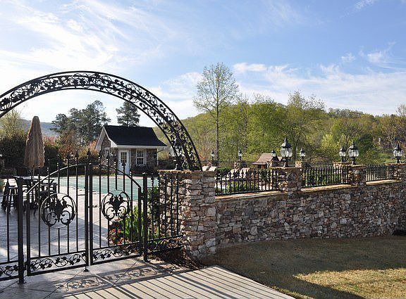Portobello Road....New Orleans-style captivating two-story on the waterfront on 0.79 acres. Savor the style of this upscale home featuring lake living at its finest with outdoor fireplace, kitchen, pool, patio and waterfall! All rooms have gorgeous views of the lake and mountains. Hardwood flooring, walk-out basement and large rooms. Custom appliances and robust design make the kitchen a culinary heaven. Perfect for displaying special collections, the built-in china cabinet provides a decorating focal point. Pleasant circular drive, high ceilings, and many built-ins; Patios, balconies and covered porches; underground sprinkler system, pool house and 3-car garage; professionally landscaped and decorated. Superb styling and incomparable grace and comfort. Call for your private tour today. $794.500.