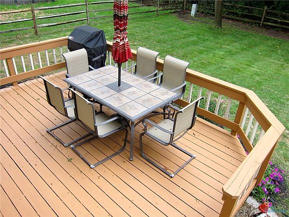 Beautiful wooded lot featuring a private back yard with no neighbor behind. 3 beds, 2 baths and a finished basement w/bar & entertainment center. Kitchen opens to large family room with high vaulted ceilings and a fireplace. Small balcony area upstairs overlooks family room. Nice master suite w/skylight in bathroom. Newly refinished deck and fenced backyard. Home warranty included! Well maintained