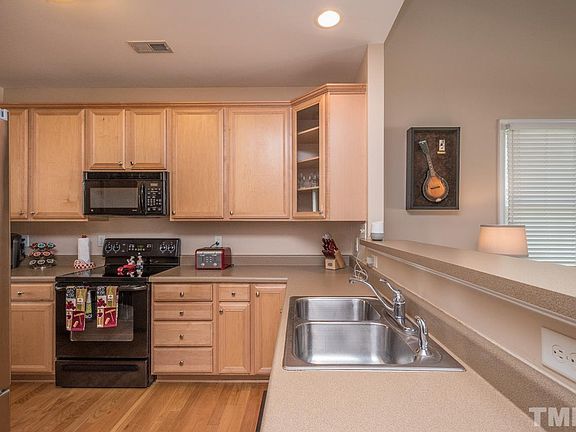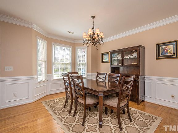 Beautiful end duplex townhome w/1-car garage, large fenced yard & private wooded view! Large 1st floor master suite w/tray ceiling, walk-in closet, garden tub, separate shower & dual sink vanity. Open floor plan w/vaulted ceiling, loft, large 2nd floor bedrooms + interior & exterior storage closets. Hardwood floors, gas log FP & wainscoting! Close to shopping (Target & more), restaurants, REX Wellness Center, Planters walk offers swimming pool & greenway trails! Convenient to I-540 & 440 + extra parking!