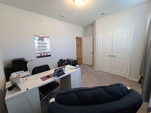 Resale DR Horton BROCK floor plan, this is the 2nd largest single story. Bringing to the table 4BR/2BA w/half bath, 3 car garage. Only 2 neighbors. Large laundry room w/extra space. Open concept living, great space for gathering loads of people. A study/work nook for learning or working from home Lined shelves, cabinets & drawers throughout. Concrete poured around back & side of the house, w/storage building. Colors are neutral, like new property.