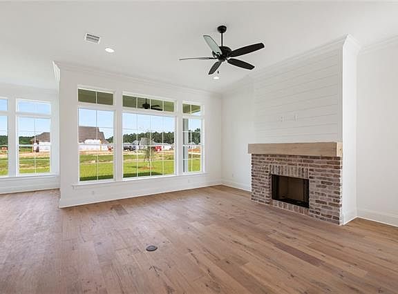 Check out this floor plan! Side entry with foyer leading to a light and airyliving, kitchen, and dining space that opens onto a rear porch.Cook friendly kitchen design. Gas fireplace in the living area.Private master suite with extra large closetoff the bath. The other bedrooms are far forward in this home.Use one as an office or craft room. Mudroom.Walking distance to Bedico Creekâs second pool/pavilion,Lake Audubon, and loads of greenspace for recreation.