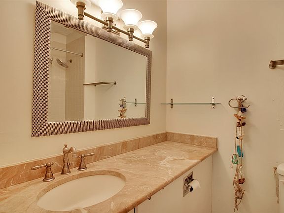 LARGE ONE BEDROOM WITH 2ND BEDROOM/ DEN/ OFFICE. 1.5 BATHROOMS UPDATED KITCHEN WITH PLENTY OF COUNTER SPACE, GRANITE COUNTER TOPS AND BREAKFAST BAR. COMFORTABLE LIVING ROOM SPACE. MASTER BEDROOM CAN ACCOMMODATE A KING SIZE BED AND LARGE FURNITURE. FULL AMENITY BUILDING WITH 24 HOUR DOORMAN, OLYMPIC SIZE INDOOR POOL, OUTDOOR POOL, COURTYARD, FITNESS CENTER, BUSINESS CENTER, AND GARAGE PARKING AVAILABLE FOR RENT MONTHLY. USE OF AMENITIES AND UTILITIES INCLUDED IN RENT. SHOPS AND RESTAURANTS ALL AROUND. BUSES TO NYC RIGHT OUTSIDE. EASY ACCESS TO THE FERRY. QUICK DRIVE INTO MANHATTAN. AVAILABLE JULY 1ST.
