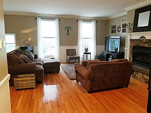 Beautiful Kaclik built home with several unique upgrades! Exceptional floor plan and a level lot that backs to a wooded area. Hardwood floors, 9' ceilings, newly painted with crown molding the spans the main level. Fabulous eat-in-kitchen with ceramic back splash, island, stainless appliances with professional stove/oven, large pantry and walk out to deck with pergola and steps down to yard. Living room features recessed lighting and a beautiful stone fireplace. A lush master suite boasts a coffered wall, tray ceiling, large walk-in closet and en-suite with complete bath. Lower level game room features a wet bar, walk-out to lower deck and level yard. Outstanding location nestled away from hustle and bustle, yet close to all shopping, restaurants, entertainment and only 25 minutes to Pittsburgh. This is a beautiful must see home.