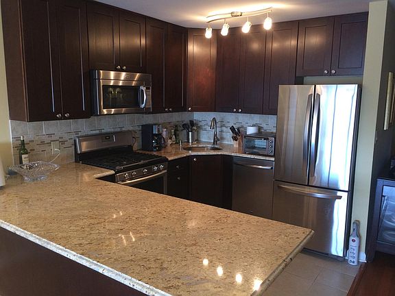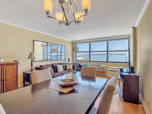 Available April 1: Enjoy amazing unobstructed Manhattan views from this spectacular 2 bedrooms, 2 bath and 1,337 square feet condominium located on the 27th floor of the Galaxy Towers, a full service condominium located on the Hudson River. Impeccably maintained and move-in ready, this home boasts laminate wood flooring, crown molding, huge windows, spacious open floorplan and a renovated kitchen with dark wood cabinets, beige granite countertops, stainless steel appliances, walk-in pantry/storage room and same floor laundry. Both bedrooms are spacious with plush carpeting, ample closet space and large windows for natural light. This unit also features two renovated full baths with granite countertops. Maintenance includes electricity (A/C and heat), gas, 24/7 security and concierge services as well as access to fantastic amenities including indoor & outdoor pools, hot tub, sauna, steam room, fitness center w/Peloton bike, sports courts, children's playroom, game room, private park/garden, and BBQ corner. Bldg is pet friendly with covered dog walk. Onsite mall features public library, restaurant, grocery, pharmacy, and services. In-complex garage parking is $120/month. PRIME LOCATION. Easy 30-min commute to NYC with access to ferry and bus stop in front of building. This unit has it all!! No Fees. Utilities included. Pets allowed.
