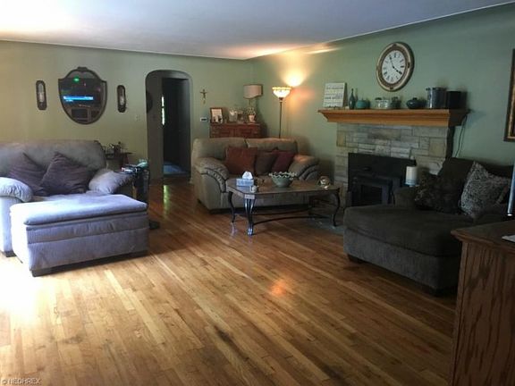 This stunning 3 bedroom 2 bath brick & vinyl spacious brick ranch is neat as a pin! Situated on a beautiful private wooded 2.35 acre lot, with a stream running through the back- this is the perfect place to enjoy nature & seclusion while watching the wild life. The house features a covered front porch, that leads into a ceramic tiled foyer with humongous storage/ coat closet. The over sized living room with stone faced wood burning fireplace has hardwood floors and a coved ceiling. The family room has a wall of windows that overlook the private backyard. Chef's dream kitchen- completely updated with plenty of cabinets & counter tops, cooking area is open to the dining area. All kitchen appliances stay. And, the kitchen features sliding glass doors with easy access to the deck, great for grilling & entertaining. Split bedroom floor plan: 2 spacious bedrooms and full bath on one end of the home, and large master bedroom, with full bath, walk in closet, and first floor laundry on the other end of the home. Large rec room in the partially finished basement with stone faced gas fireplace, the basement also features a work room, several storage rooms, and a walk out exit door. Outside the house features a double tier deck with swimming pool, storage shed, and wood shed. 2 car garage, and plenty of parking space. Home Warranty is included to make this a worry free purchase! Call today to schedule your private showing!