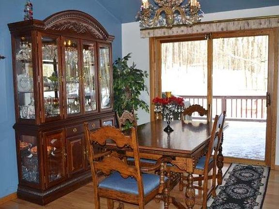 This quality stick built home is located close to Crescent Lake on a quiet rolling wooded lot. The kitchen is updated with stainless steel appliances, tin ceiling & enjoys a breakfast bar. The dining room has a patio door leading to the multi layered back deck with hot tub. The living room has with large windows has an electric fireplace and vaulted ceilings. There is a spacious master bedroom suite with walk in closet and private bathroom. There is a main floor laundry room, 2nd full bath & 2nd bedroom to compete this level. The walk out lower level has a large family room with gas fireplace, new flooring, 3rd bedroom, full bathroom, and utility/storage room. The portable sunroom attached to the lower level patio door entry stays with the property. There is a two car garage, RV concrete pad, a concrete patio, large fire pit area, central air, & has a fresh coat of stain on the cedar siding.