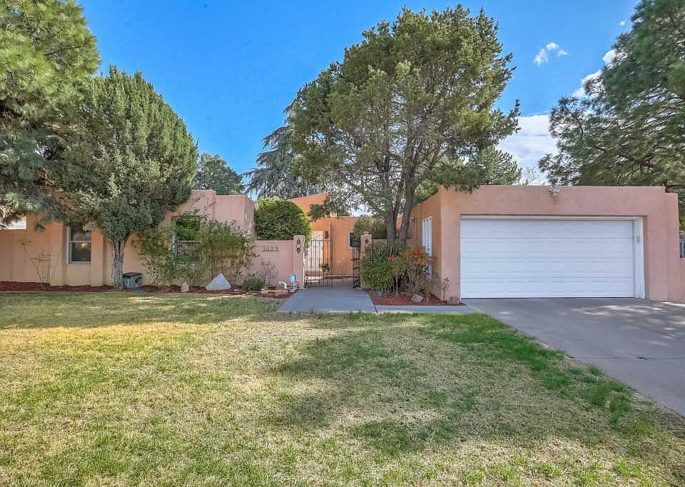 Arroyo del Oso at its finest! This spectacular Mossman home has upgrades throughout and is move-in ready. Granite counters, Brazilian hardwood & Italian tile floors, abundant natural light via the clerestory windows, 2 separate outdoor patio areas, and so much more! Need a spot to park your RV? No problem! Gated access to the backyard has that purpose in mind. Want views of the Sandias? Got that too. Love to entertain in your backyard? Mature trees and landscaping make that spot an oasis to enjoy year round. With refrigerated air and central heating, this gem won't last long. Tell your realtor to book a showing for you today!