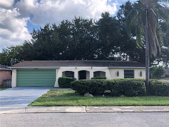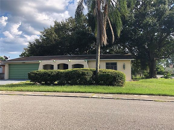 This affordable single-family home features many appealing aspects to potential home buyers. 7004 Parrot Dr is a one-story home in Port Richey with a 2-car garage (electric door opener) with half bathroom, washer/dryer hookups, and utility sink. The property consists of a fenced-in backyard along with a large shed intended for additional and convenient storage. Inside, the foyer and living area displays a unique accent wall with brick texture. There are two sizeable bedrooms with aesthetically-pleasing cedar closets with sliding doors. Matching ceramic tile persists throughout the home. There is an additional, large multi-use bonus room that has bedroom conversion potential. Past the sliding door is a relaxing, covered porch that is suitable for a jacuzzi if desired. NEW roof, only 5 years old. This home is a MUST SEE for any first-time homebuyers, vacation home, or future landlords.