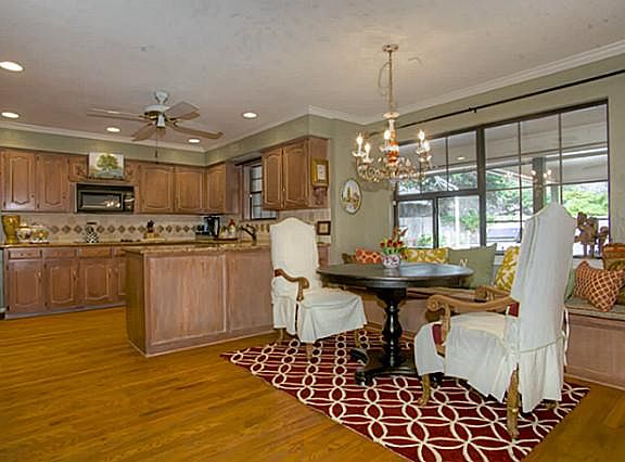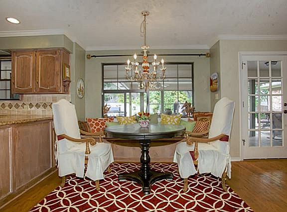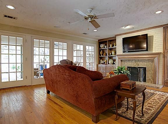 Delightful Ridglea Country Club Estates single story home on a beautiful wooded lot.Extensively remodeled a few years ago with hardwood floors,granite countertops,custom cabinetry,crown molding,hand-troweled walls throughout,and more. French doors and wall of windows overlook the huge covered porch, outdoor living areas,sparkling pool with heated spa & lovely landscaping. New roof Feb. 2014. This is a great house!