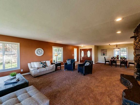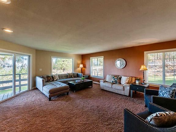 Panoramic views from this beautiful home on 7 acres just minutes to downtown Spokane. 4 beds, 4 baths, large open kitchen with double ovens and your own wood fire pizza oven. Stainless steel appliances, eat-in area, eating bar and formal dining room. This is the perfect home for entertaining. Huge Pottery Barn style pantry in the kitchen. 3 car garage, walk out basement with patio area. This home has it all!!